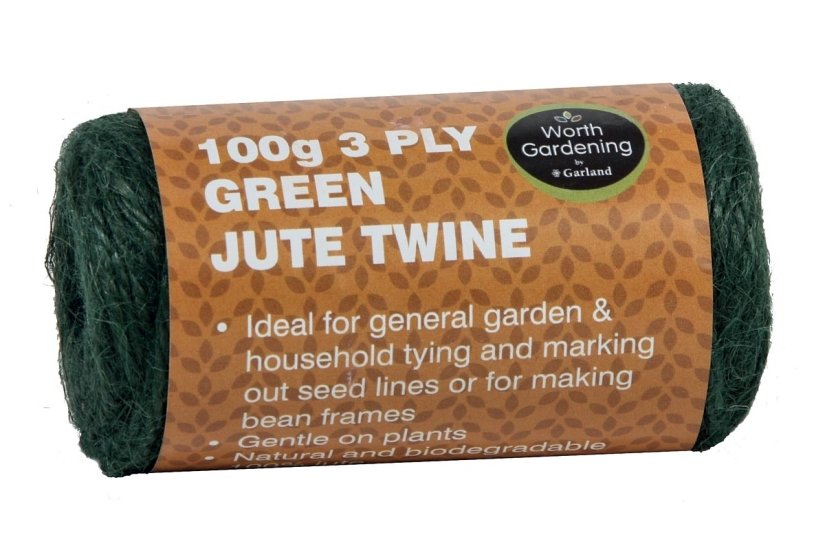 A 100g Spool of 3 Ply Green Jute Twine, ideal for general garden and household tying and marking out seed lines or for making bean frames. Gentle on plants. Made from 100% natural and biodegradable jute.