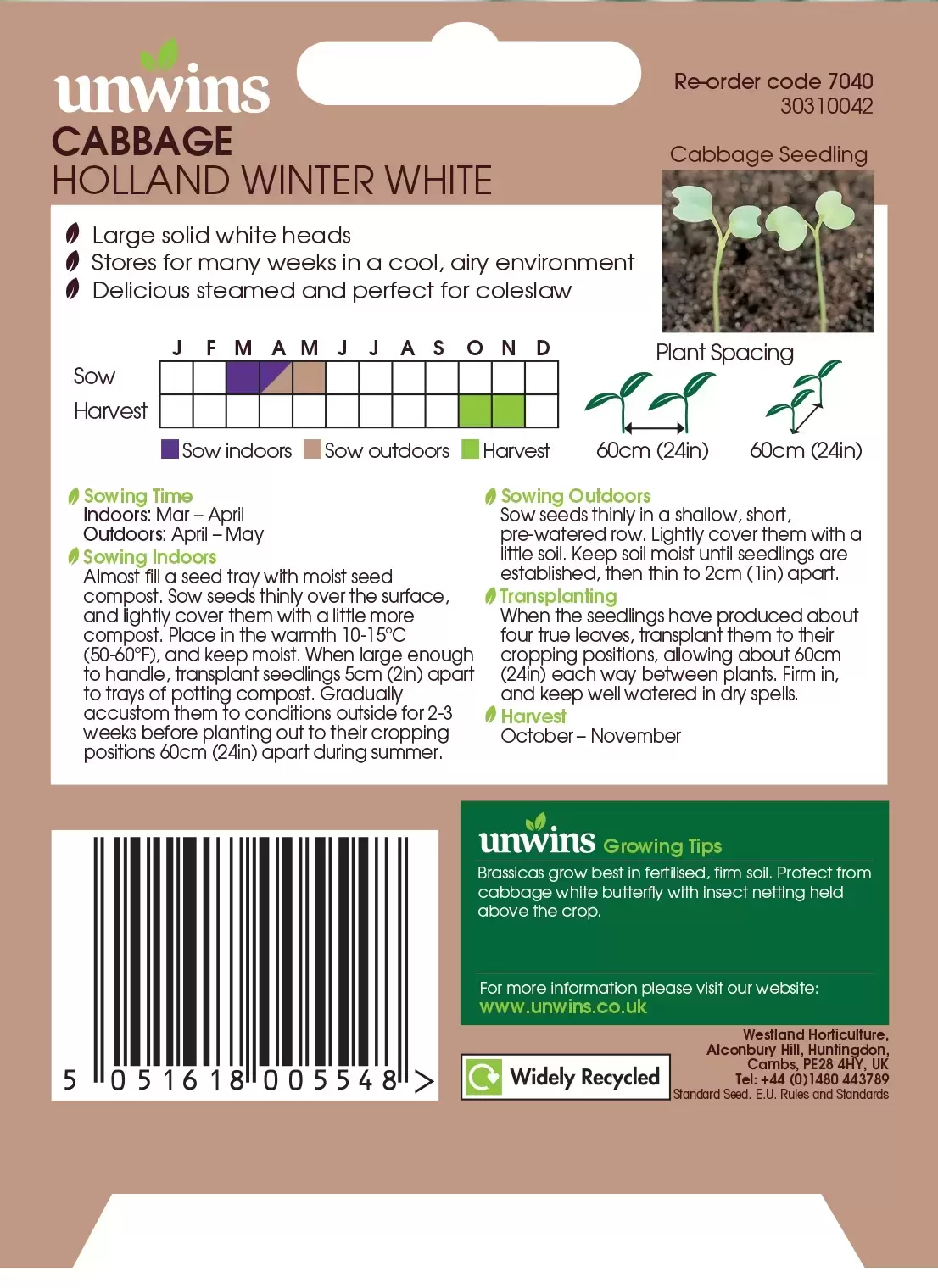 Are you looking for the product "Cabbage Holland Winter White"? We offer this product in our garden centre in Cornamagh, Ireland. You can order it online or you can visit our garden centre in Cornamagh, Athlone, Ireland for more information about "Cabbage Holland Winter White". We look forward to seeing you soon!