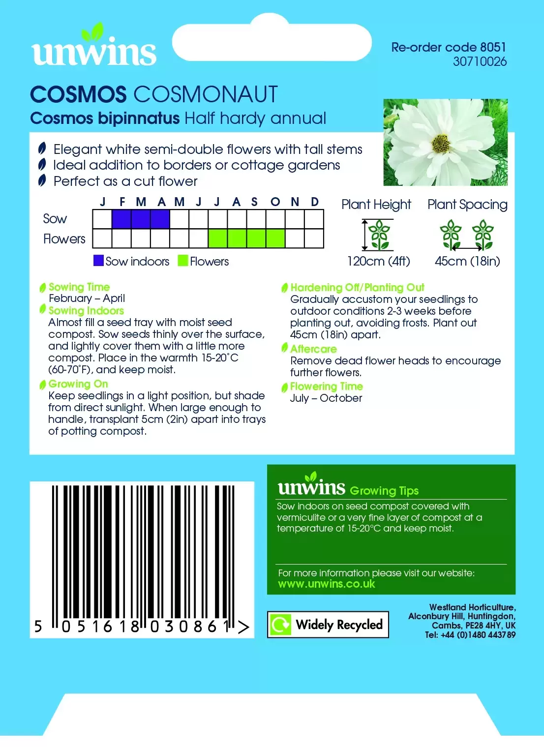 Are you looking for the product "Cosmos Cosmonaut"? We offer this product in our garden centre in Cornamagh, Ireland. You can order it online or you can visit our garden centre in Cornamagh, Athlone, Ireland for more information about "Cosmos Cosmonaut". We look forward to seeing you soon!
