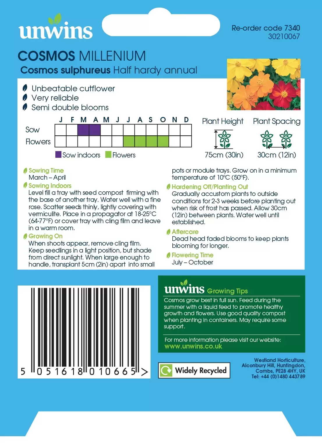 Are you looking for the product "Cosmos Millennium"? We offer this product in our garden centre in Cornamagh, Ireland. You can order it online or you can visit our garden centre in Cornamagh, Athlone, Ireland for more information about "Cosmos Millennium". We look forward to seeing you soon!