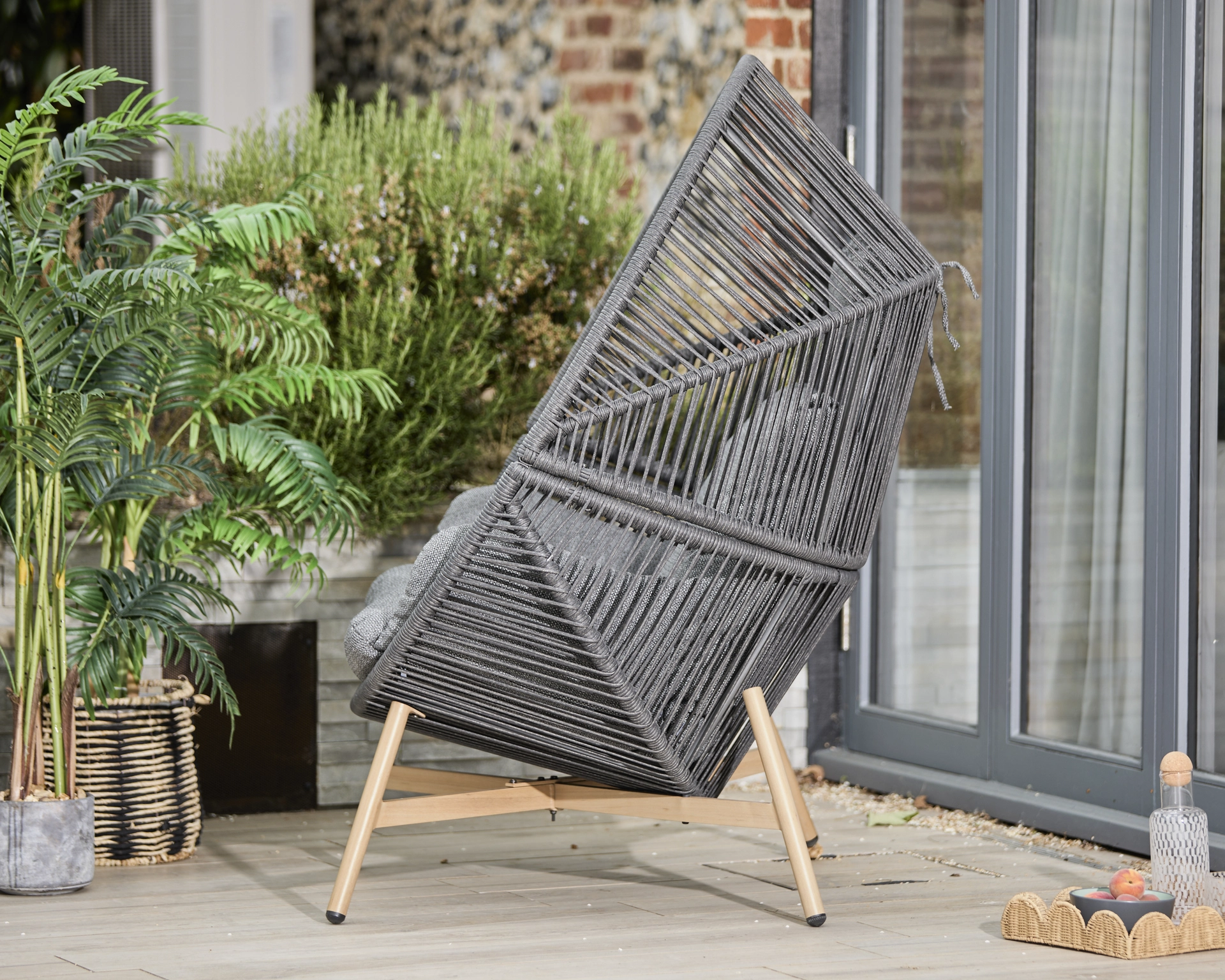 Designed for low-maintenance outdoor living, the PE rope weave is UV-resistant, waterproof, and easy to care for. Cushions are crafted with Eden season-proof fabric, offering water-repellent, UV-resistant, and quick-drying performance. StainSafe coating makes everyday spills simple to clean with a sponge, while eco-friendly EcoCore fillings provide sustainable comfort.
