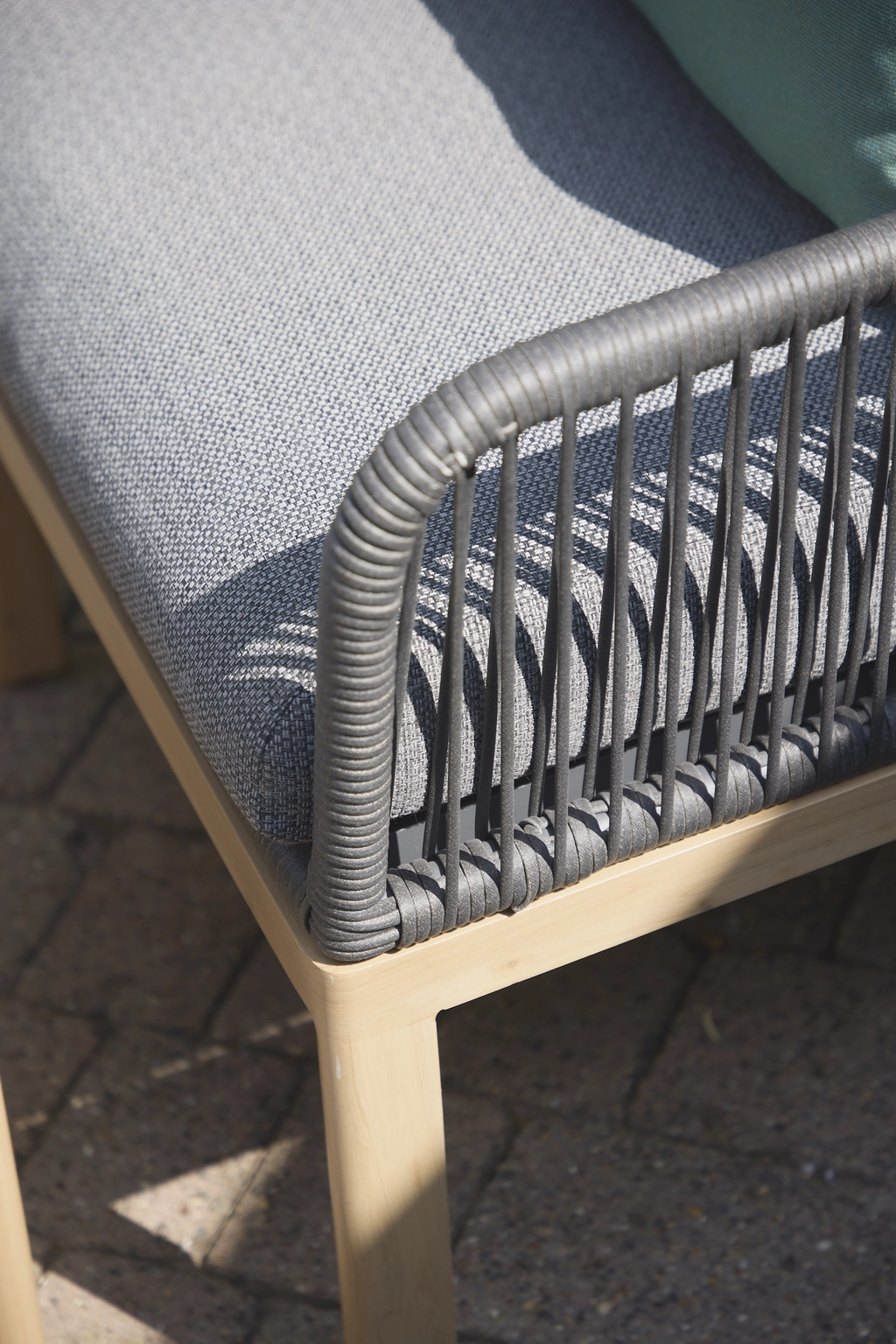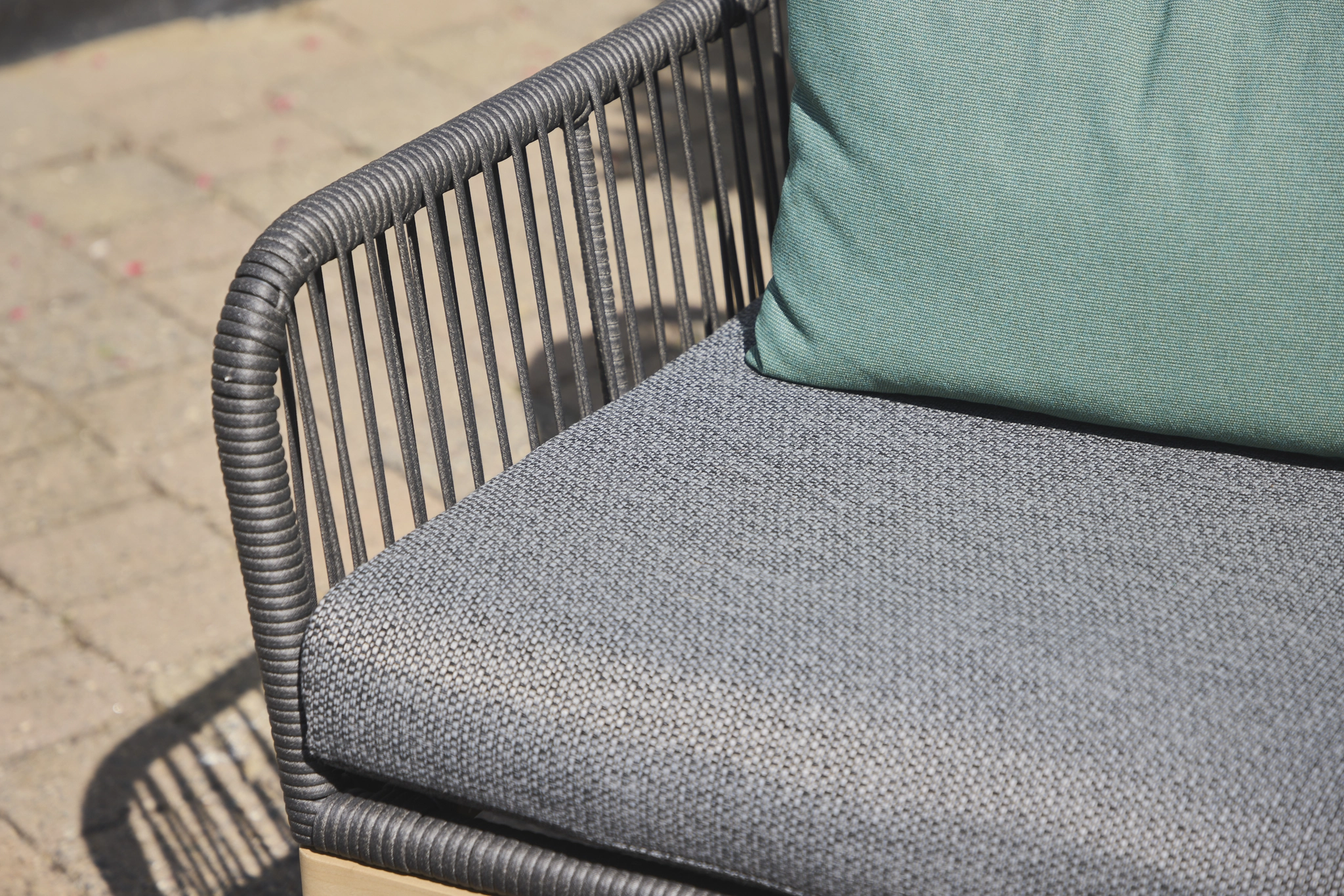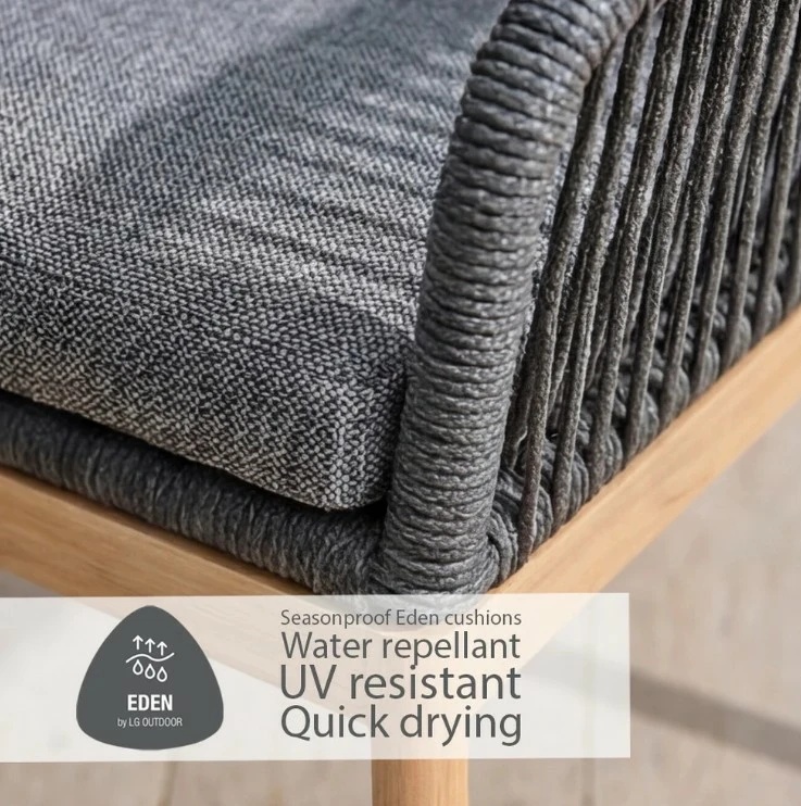 Designed for low-maintenance outdoor living, the PE rope weave is UV-resistant, waterproof, and easy to care for. Cushions are crafted with Eden season-proof fabric, offering water-repellent, UV-resistant, and quick-drying performance. StainSafe coating makes everyday spills simple to clean with a sponge, while eco-friendly EcoCore fillings provide sustainable comfort.