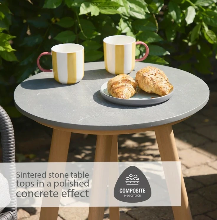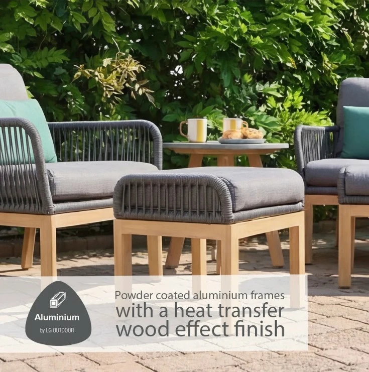 The Peru Charcoal Everope Collection combines clean, contemporary lines with classic outdoor durability. Its tightly woven PE rope forms a striking, modern pattern, while the stone-effect Stone-Tek tabletops contrast beautifully with wood-effect frames for a sophisticated look.