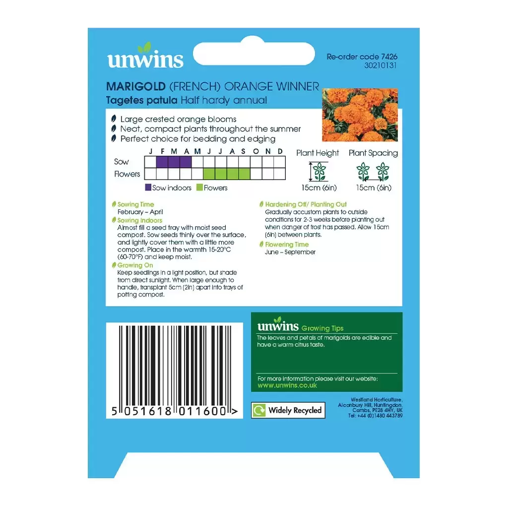 Are you looking for the product "Marigold French Orange Winner"? We offer this product in our garden centre in Cornamagh, Ireland. You can order it online or you can visit our garden centre in Cornamagh, Athlone, Ireland for more information about "Marigold French Orange Winner". We look forward to seeing you soon!